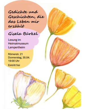 Gedichte und Geschichten, die das Leben mir erzählt. Unter diesem schönen Motto steht der Abend am Donnerstag, den 30. April um 19:00 Uhr im Heimatmuseum Lampertheim, Römerstr. 21. Hierzu laden wir Sie alle herzlich ein.